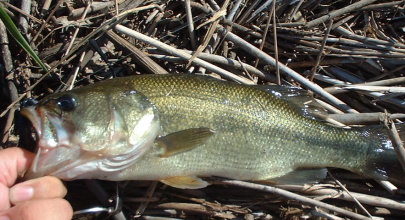 ルアーはベビーブラッシュホッグ。28センチの小さなバスでした。