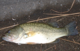 移動したところでスピナーベイトで1匹釣れました。護岸に平行に引いてきたところでヒット。ルアーはエバーグリーンのデルタフォース。何オンスかわからないけど、1番軽いサイズだと思います。シングルウィローでアピールが大きすぎないのが良いのかも知れません。印旛沼でも1匹かけてるし(バラしたけど)、釣れるスピナーベイトだね。