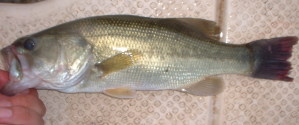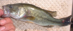アシ際で杭が並んでいる場所でジックリとテキサスを動かしているとラインが走りました。ヒットです。少しサイズアップして30センチでした。ルアーはゲーリーヤマモトのクリーチャーでした。