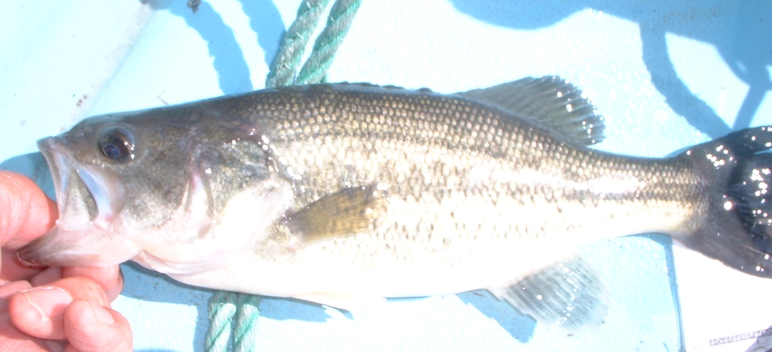 上がってきたのは25センチの小さいバスですが、今年の初バスです。やっと釣れました。放流バスかも知れません。