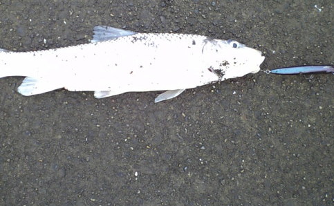 近くに寄せて抜きあげました。40センチオーバーのニゴイでした。何も釣れないよりはマシですが。ちなみにヒットルアーはメガバス、ビジョン95でした。