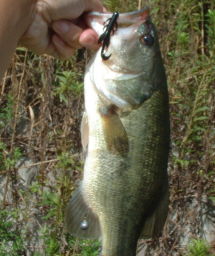 いつもの橋より上流へ。足場は悪くて狭いけど、ワームで攻めました。カットテールのワッキーリグを泳がせてみるも反応なし。で、ドロップショットにチェンジ。
